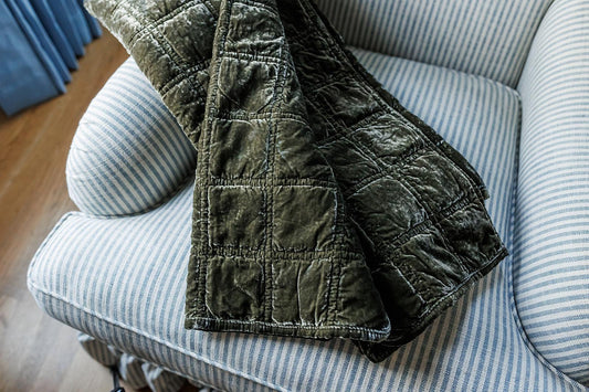 Quilted Velvet Throw, Dark Olive