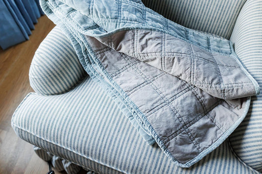 Quilted Velvet Throw, Icy Blue