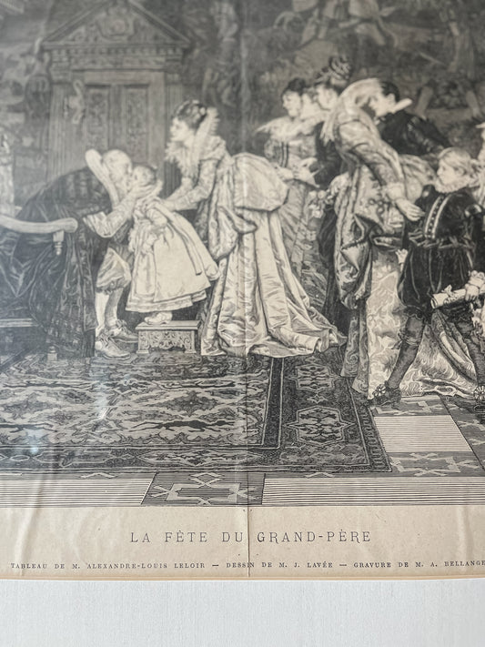 Framed La Fête du Grand-Père” – Antique 19th-Century French Engraving