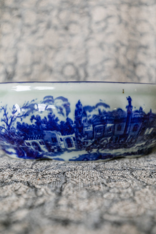 Blue and White Oval Bowl