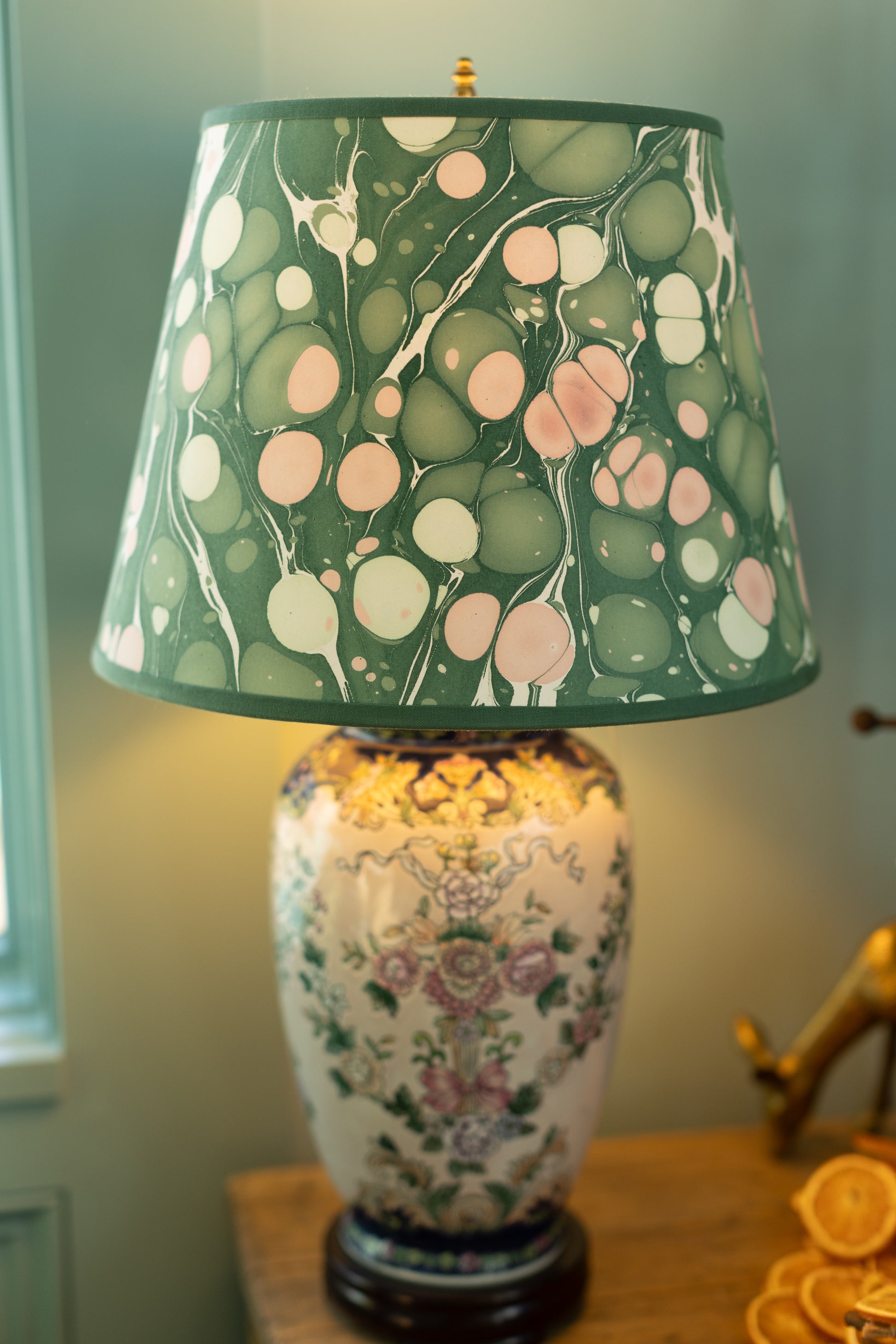 This marbled shade is a simple way of adding handcrafted beauty to an existing lamp base.