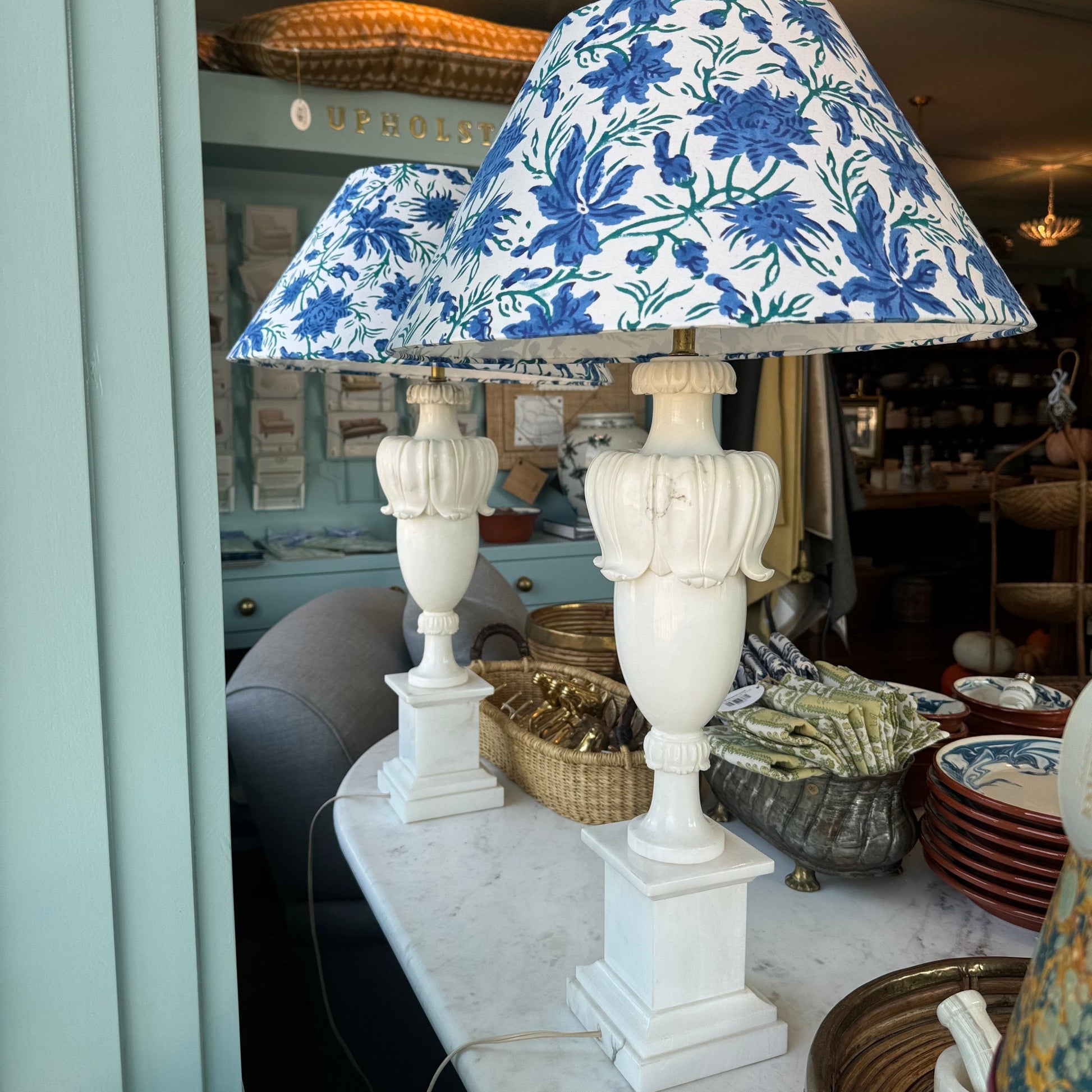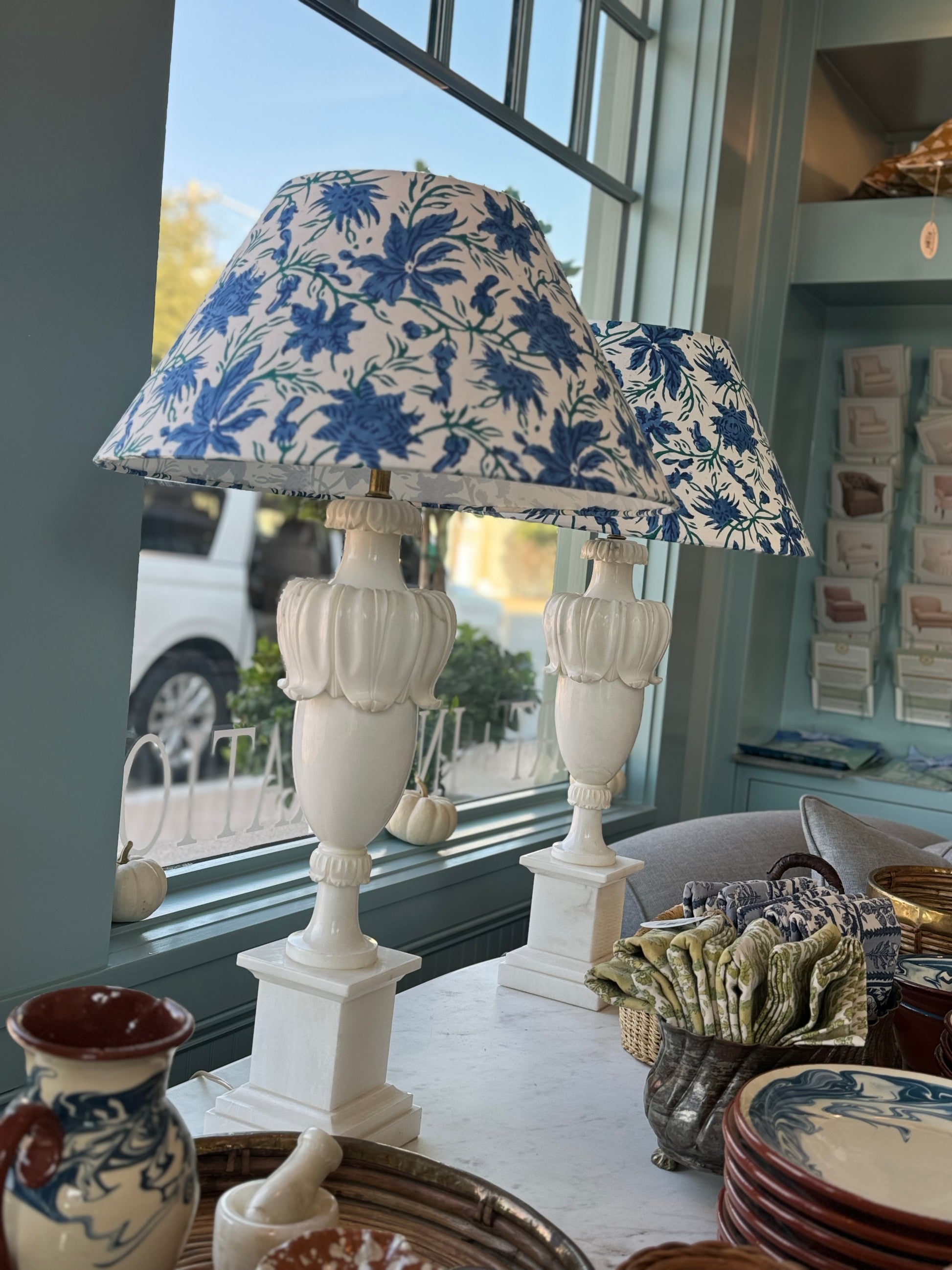 Top off your vintage lamps with these coolie paper lampshades. Featuring a graceful blue and white floral motif, they'll add a happy pop of color to your space.