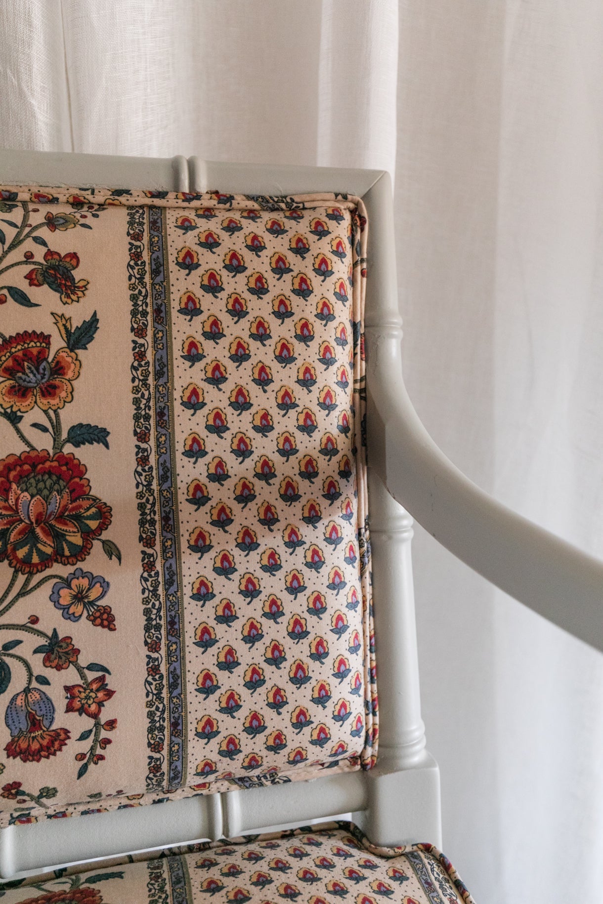 Bamboo Floral Stripe Arm Chairs, Pair