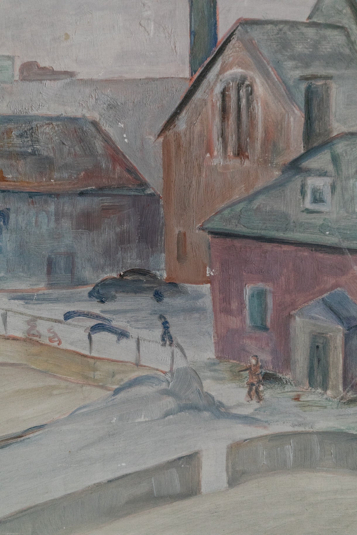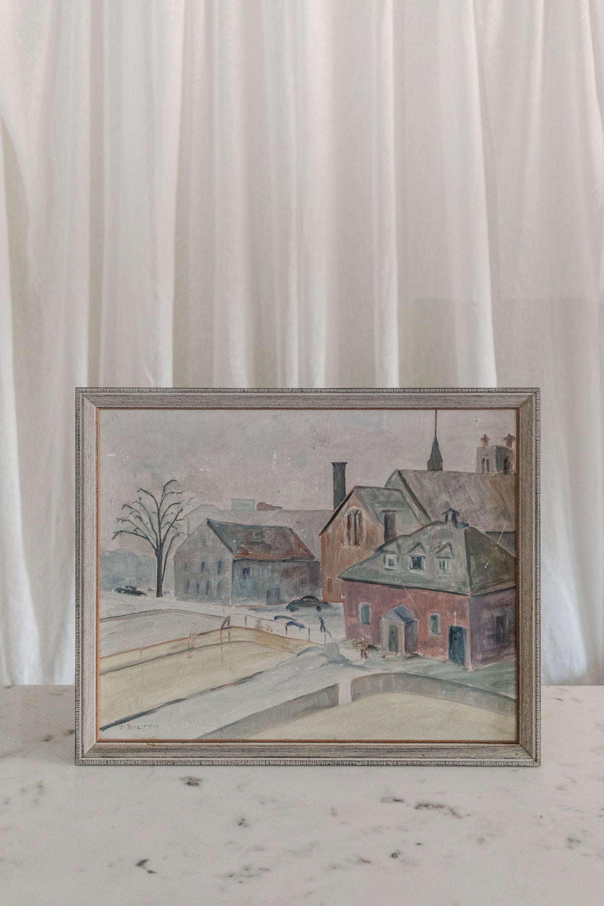Buildings with Church Spire, Framed Original