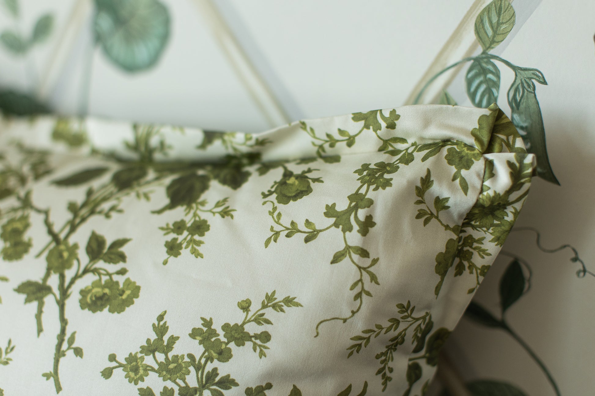 The Keaton Bedding Collection in Olive exquisite comfort crafted from premium cotton/linen blend or Sateen cotton, complemented by refined polyester batting. This thoughtfully weighted ensemble provides ideal comfort throughout all seasons.