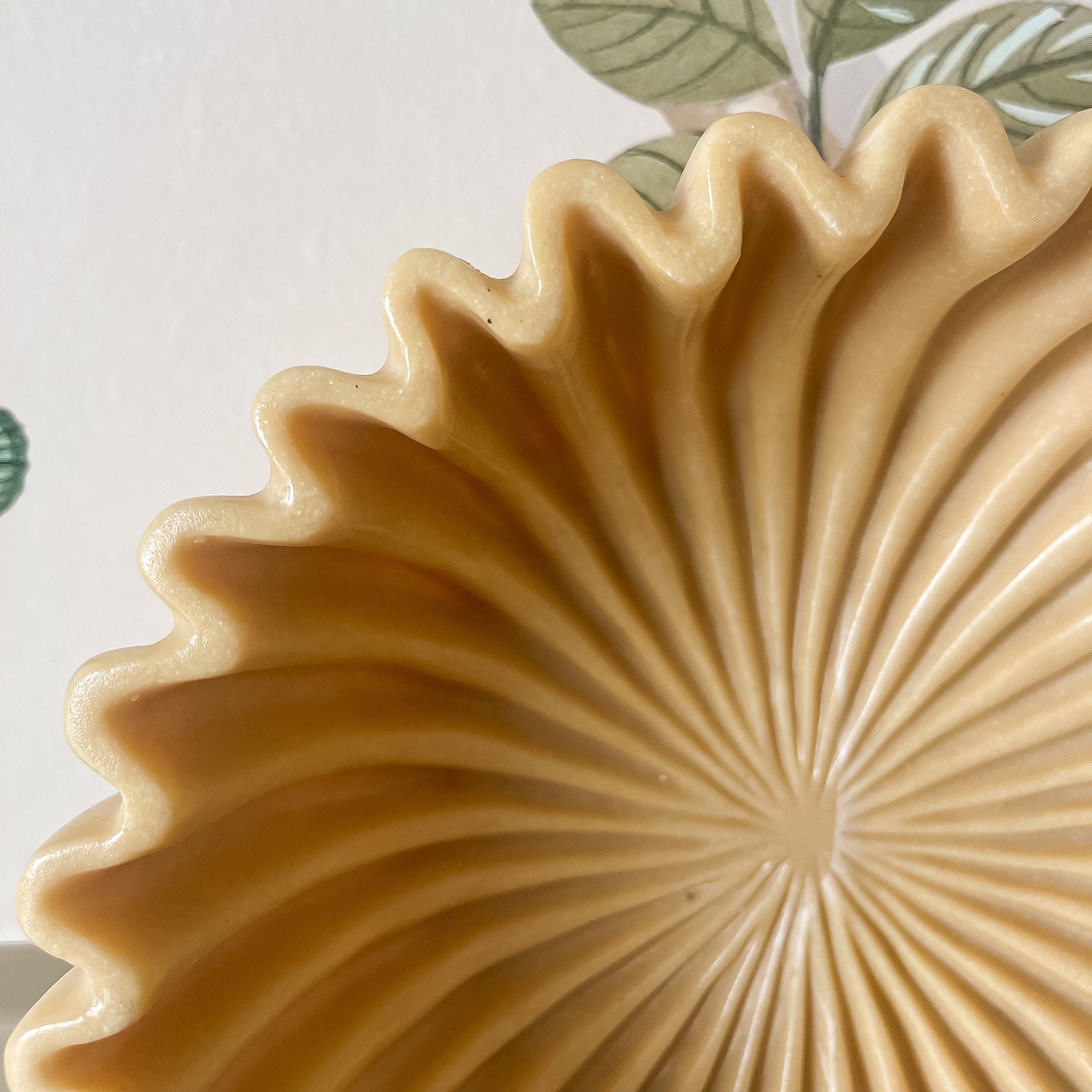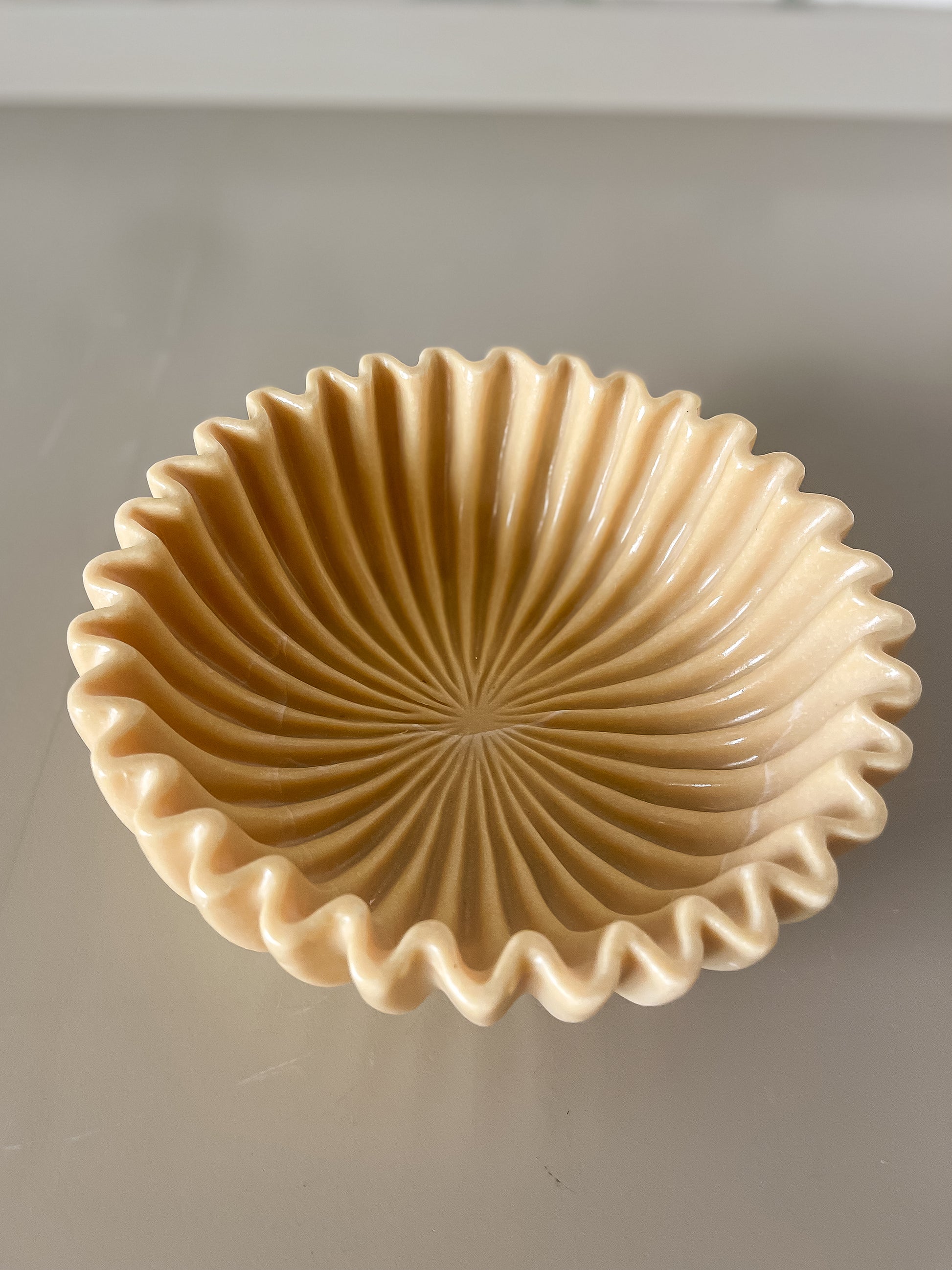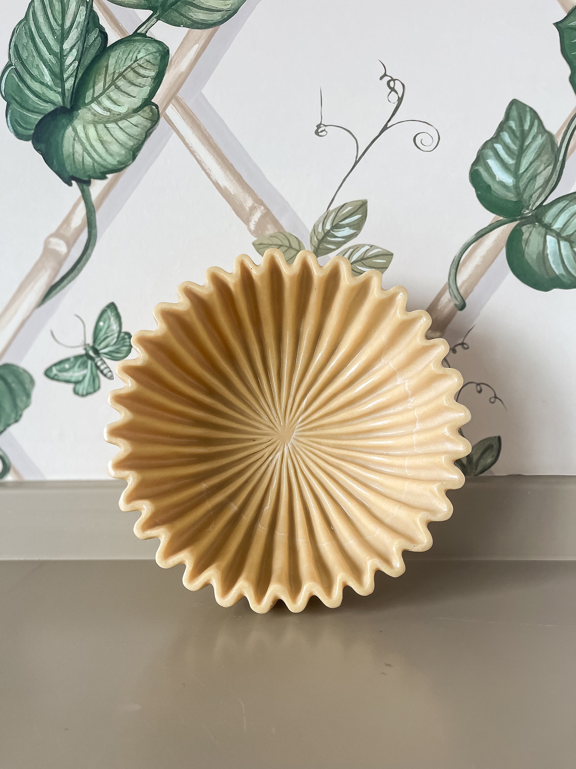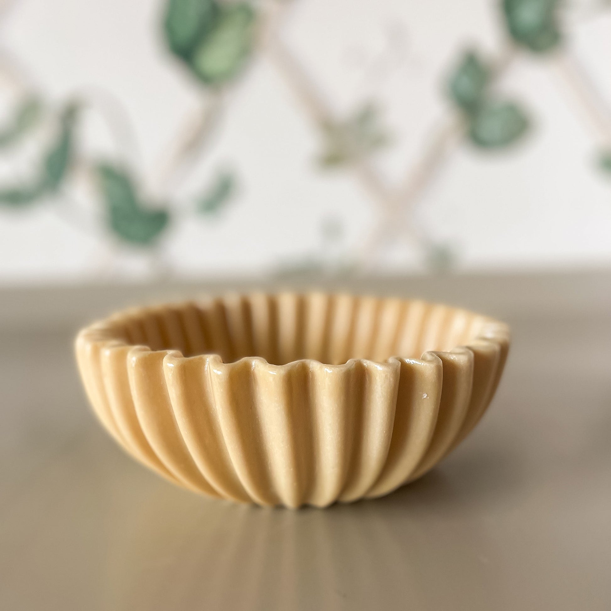 A timeless blend of texture and simplicity, this fluted resin bowl brings warmth and elegance to any space. The soft sandstone hue enhances its scalloped silhouette, making it the perfect vessel for serving, styling, or display. Crafted from lightweight yet durable resin, this piece offers the look of ceramic with added versatility. Whether used for fruit, small treasures, or as a decorative accent, it complements both modern and vintage interiors with its understated charm.