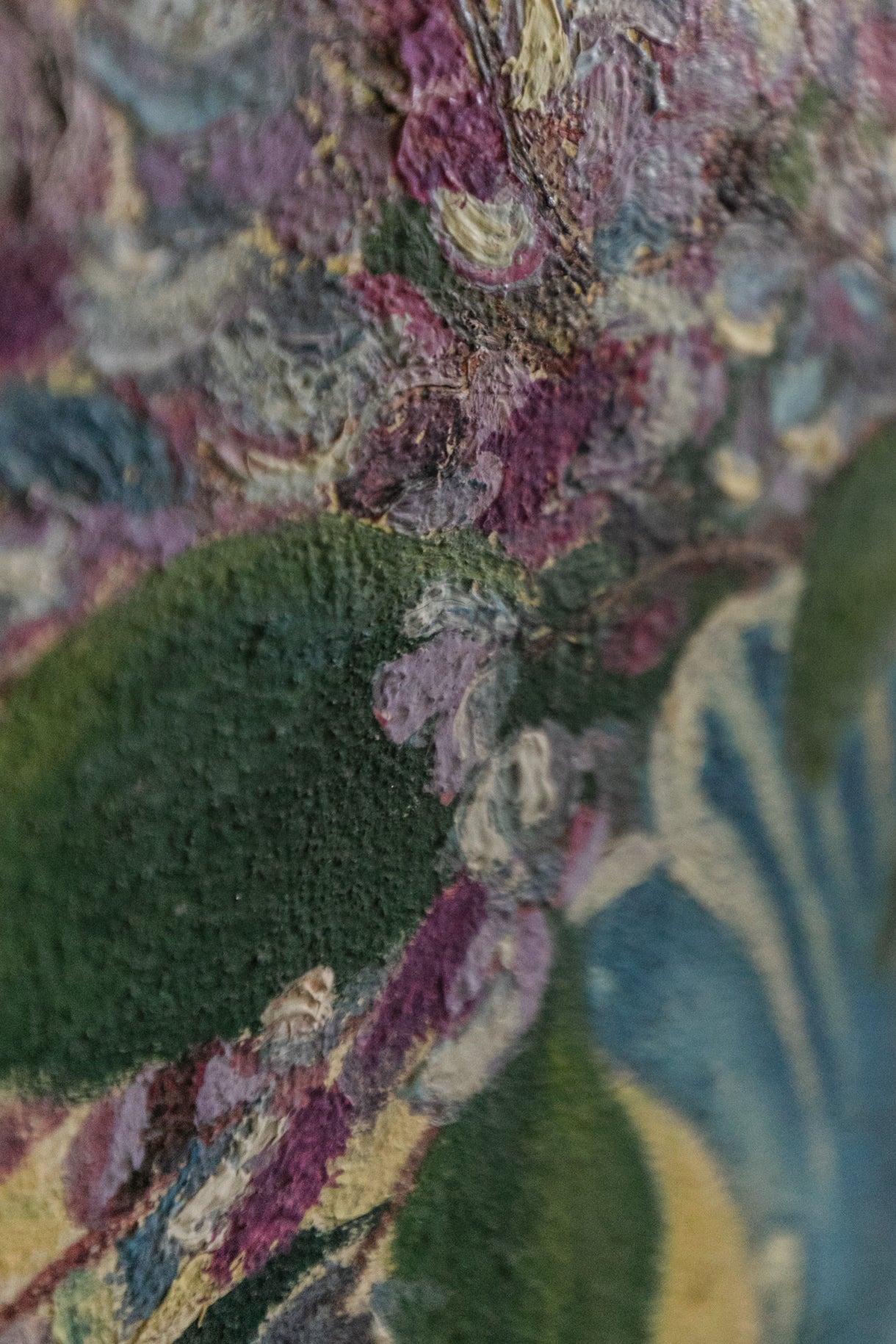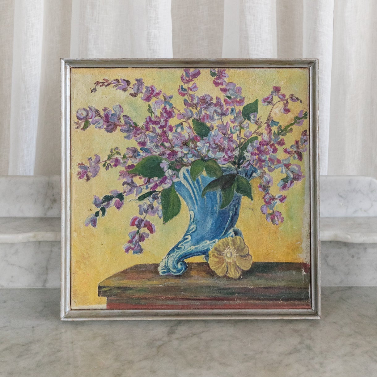 Purple Flowers in Blue Vase