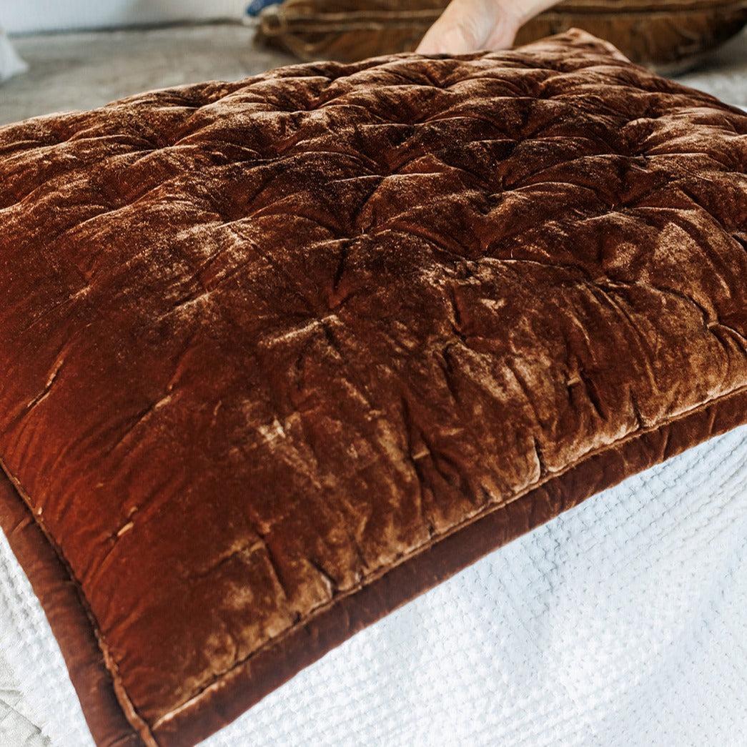 Impart the sumptuous look and feel of silk velvet to your bedding with this faux silk velvet quilt. Our velvet lends a lustrous sheen and super-soft caress, while its quilted design adds texture and depth. It comes in a range of tones for blending with various styles and colors.