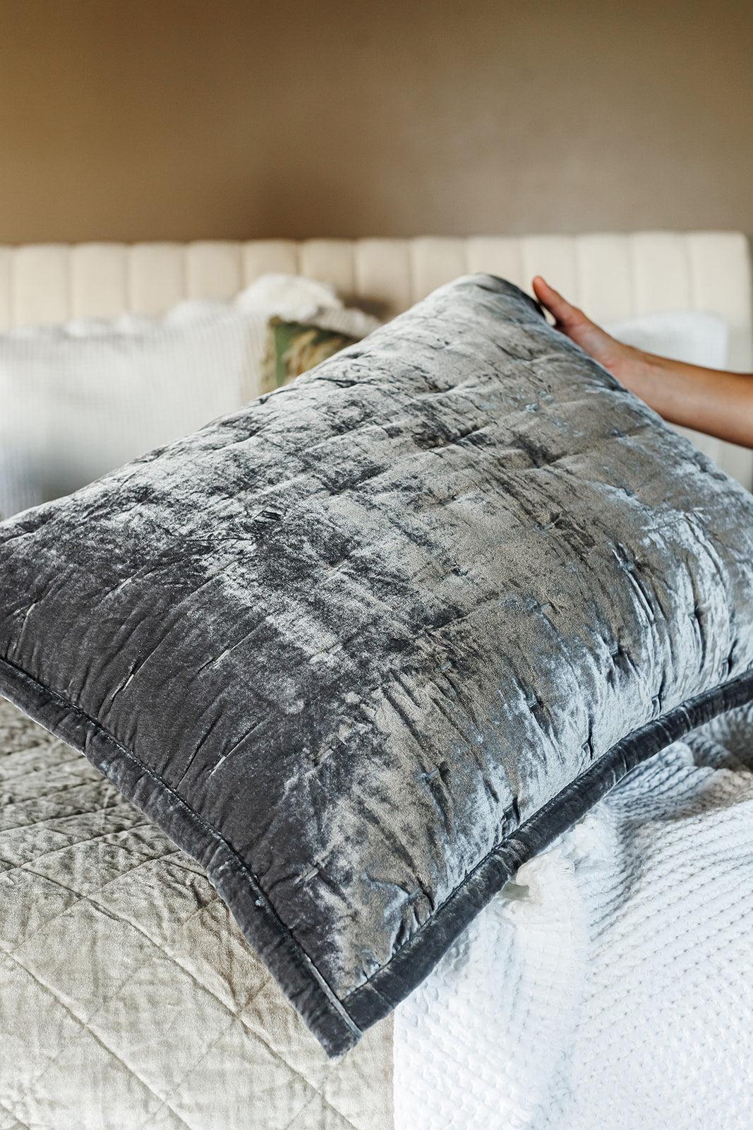 Impart the sumptuous look and feel of silk velvet to your bedding with this faux silk velvet quilt. Our velvet lends a lustrous sheen and super-soft caress, while its quilted design adds texture and depth. It comes in a range of tones for blending with various styles and colors.