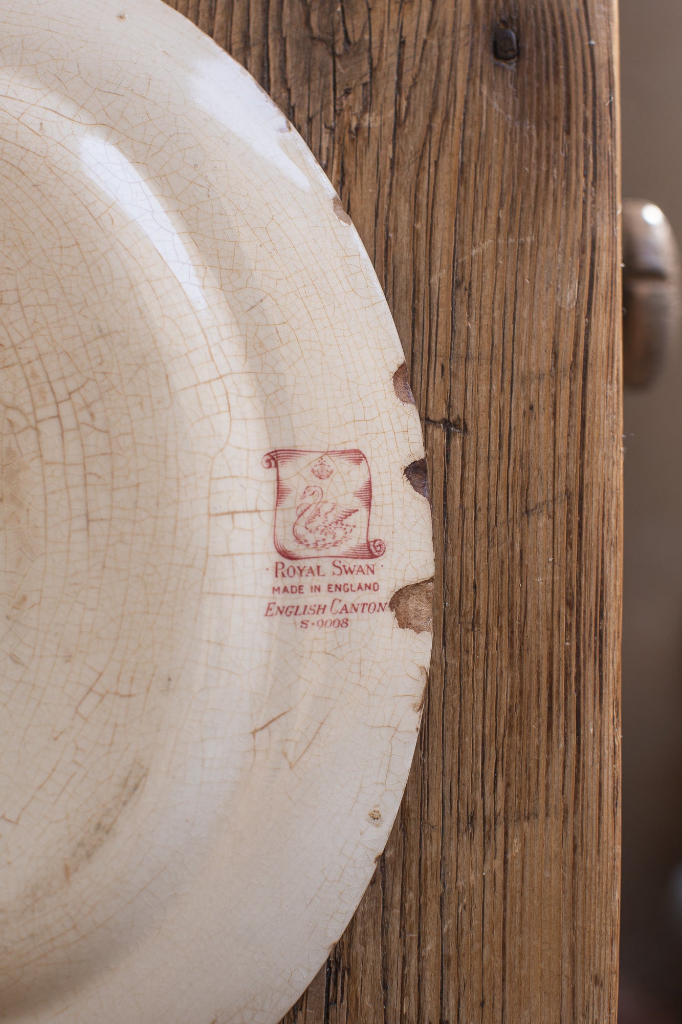 The surface bears the timeworn elegance of fine crazing, adding that perfectly imperfect antique appeal. The stamped mark on the reverse reads: Royal Swan – Made in England – English Canton – S-9008, dating the piece to mid-20th century, and making it a collectible slice of English pottery history.