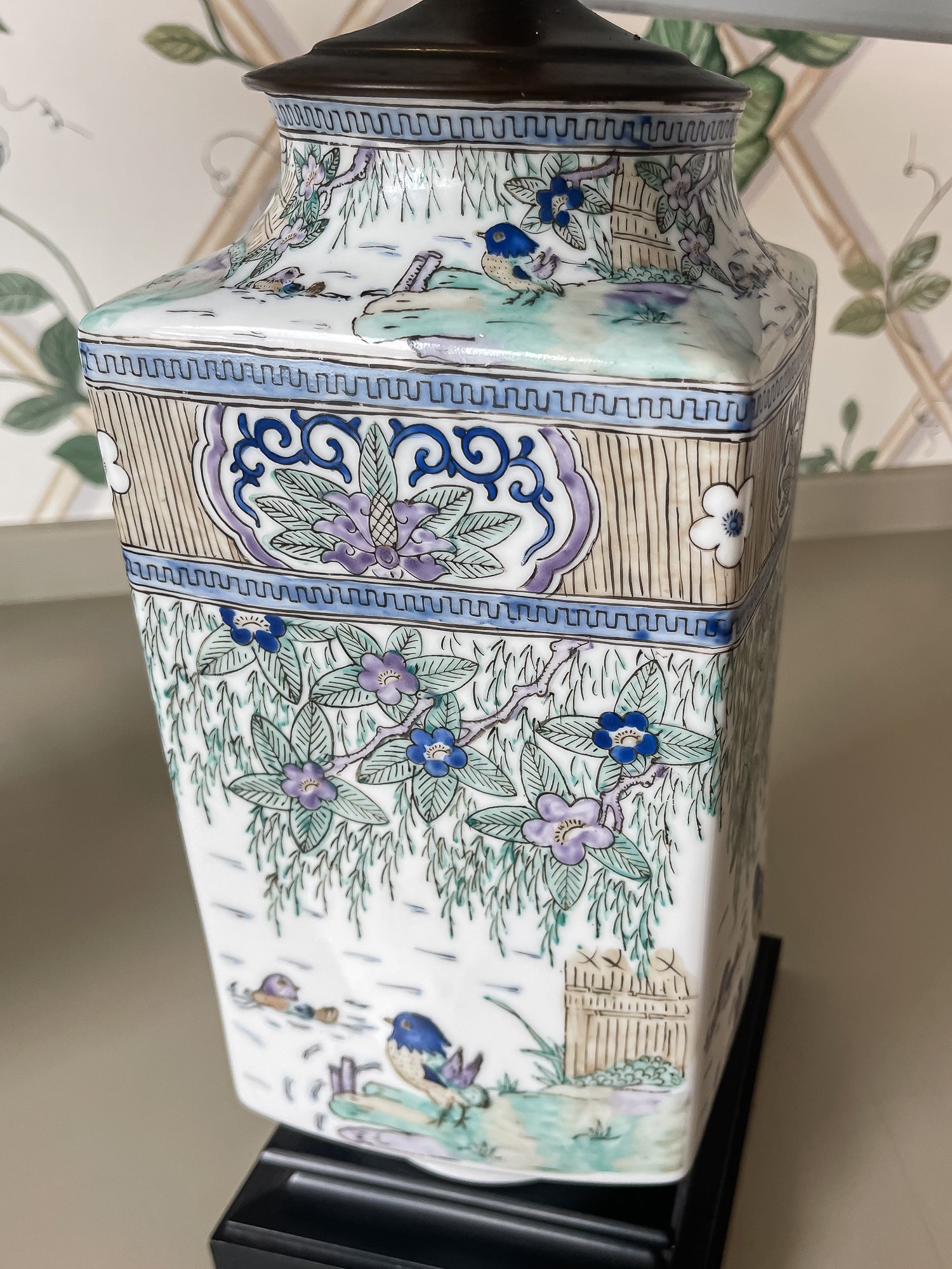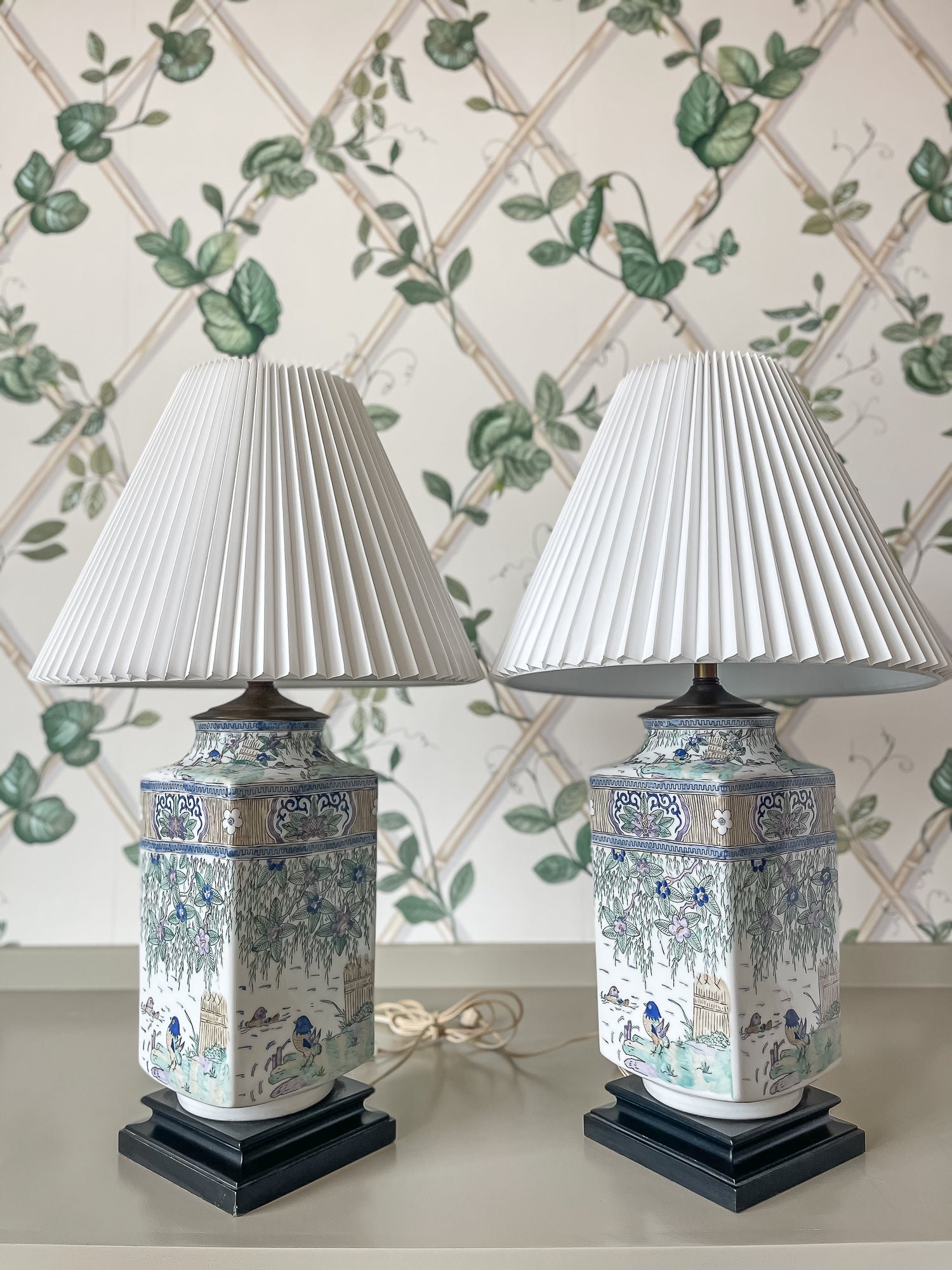 A striking blend of traditional artistry and timeless design, this pair of hand-painted porcelain table lamps adds an elegant touch to any space. Featuring a scenic pastoral motif in soft blues, greens, and neutrals, these lamps are inspired by classic European and Asian ceramics, bringing a sense of heritage and refinement to your home.